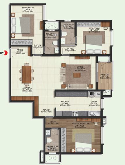 3.5BHK 3T+Pwd.R | 2.87 Cr+ | |