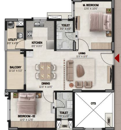 2BHK 2T | 1.08-1.25 Cr | |