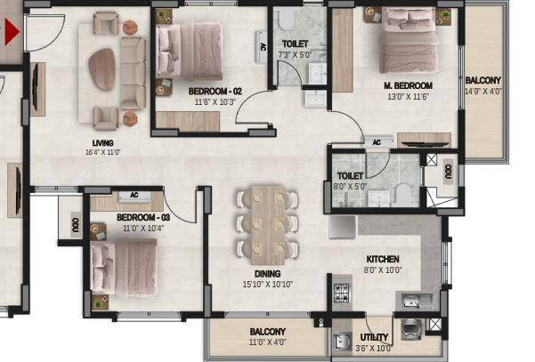 3BHK 2T | 1546-1611 |