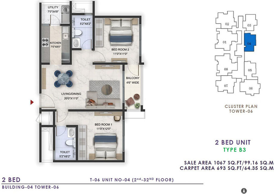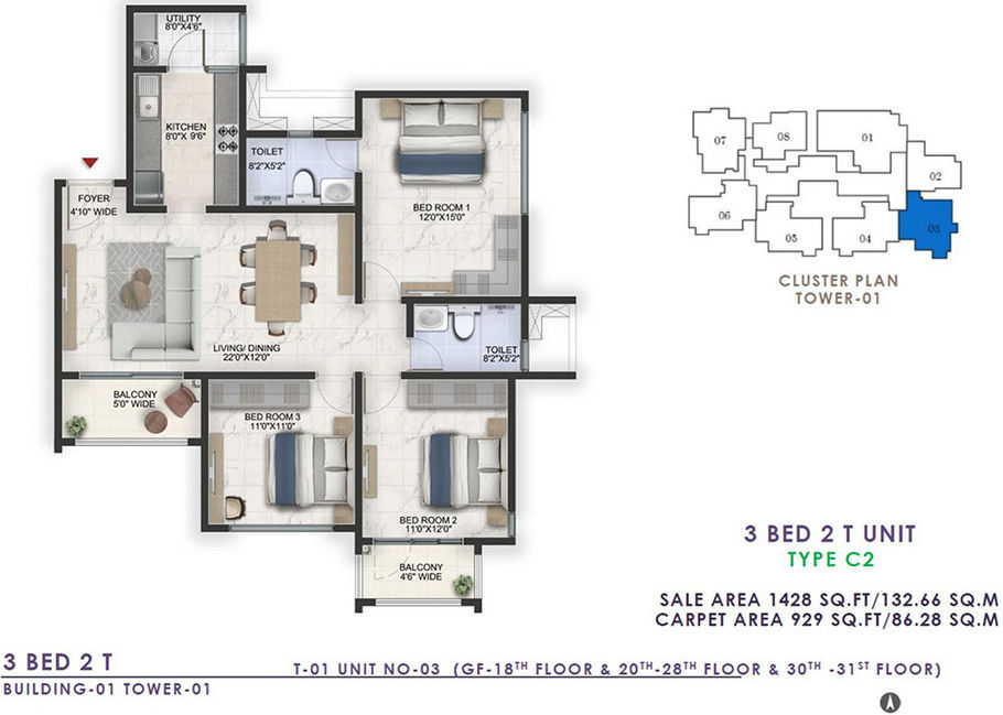 3 BHK+2T (2 Balconies) | SOLD OUT | |