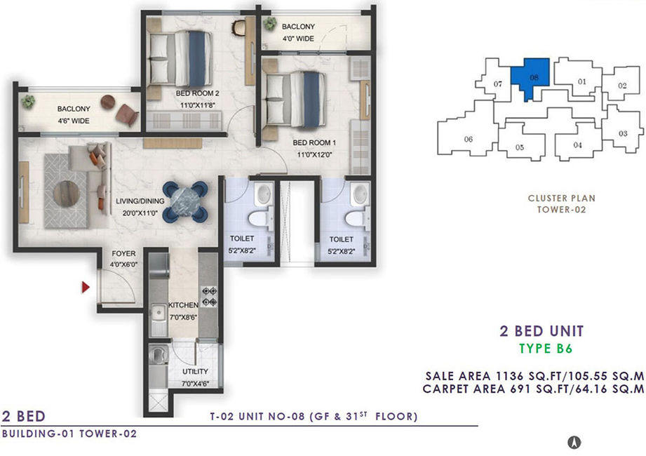 2 BHK (2 Balconies) | 1135 to 1151 |