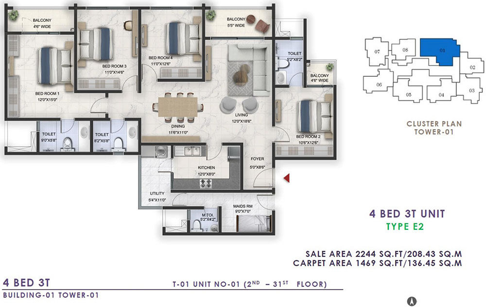 4 BHK+3T (3 Balconies Maid’s Room) | 2226 to 2244 |