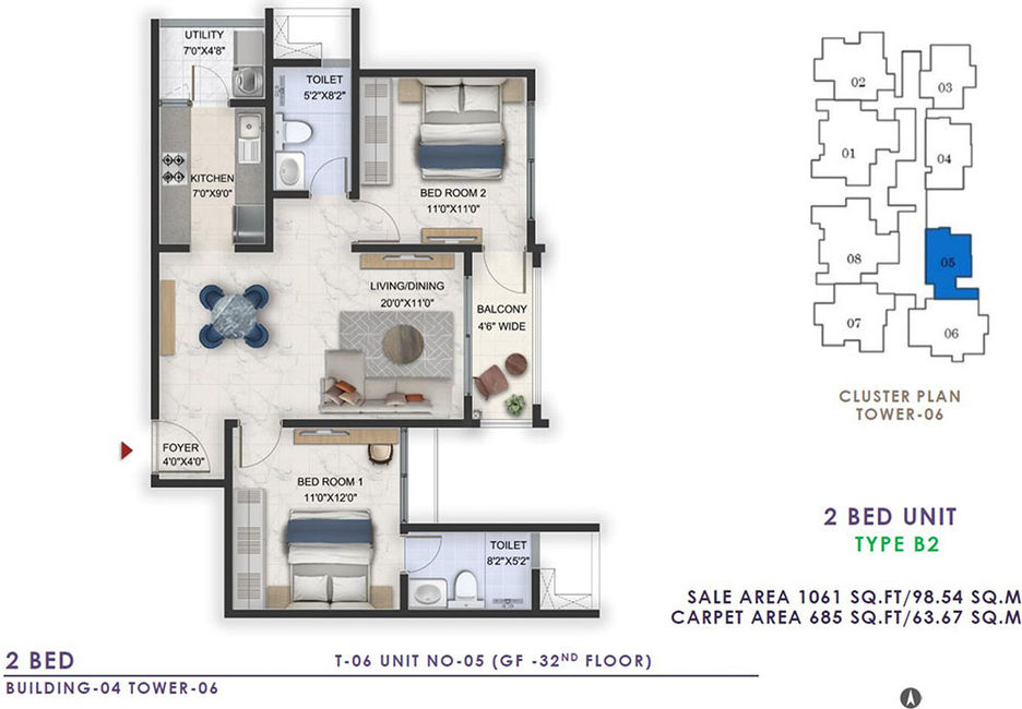 2 BHK (1 Balcony) | 1018 to 1084 |