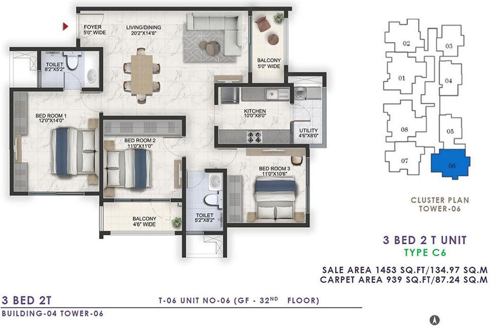 3 BHK+2T (2 Balconies) | 1407 to 1458 |